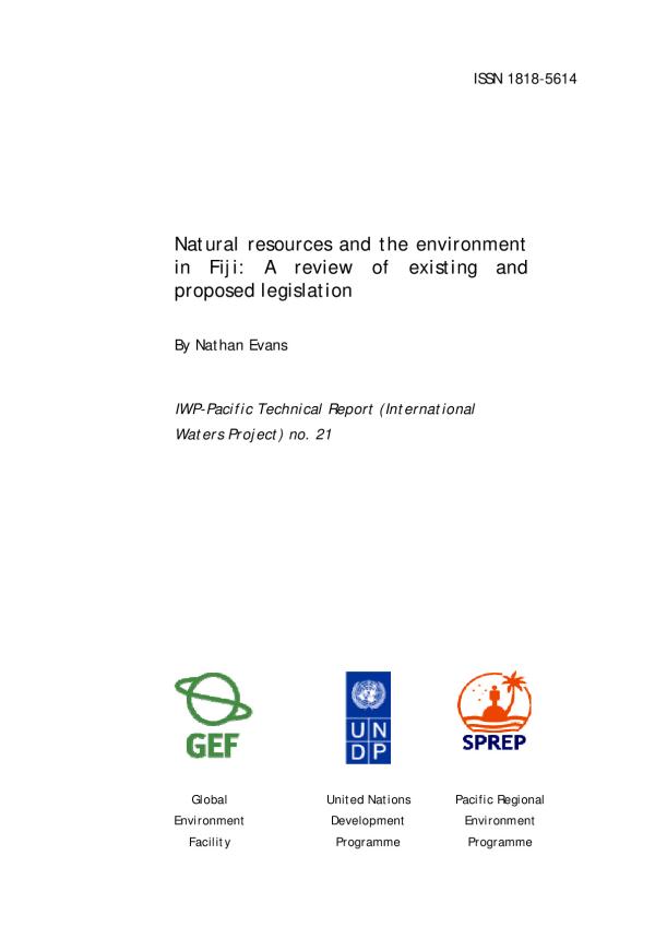 Most legislation governing natural resources in Fiji is very old and outdated, and very little attention is given to environmental issues in these statutes. The absence of a legislative environmental policy results in an absence of statutes with an express or implied environmental mandate, while laws governing resource development fail to recognise the environmental basis of natural resources. As a result, legislation provides little in the way of capacity to protect the environment from the impacts of development activities. There is certainly no mandate or legislative capacity to pursue the goal of sustainable development.