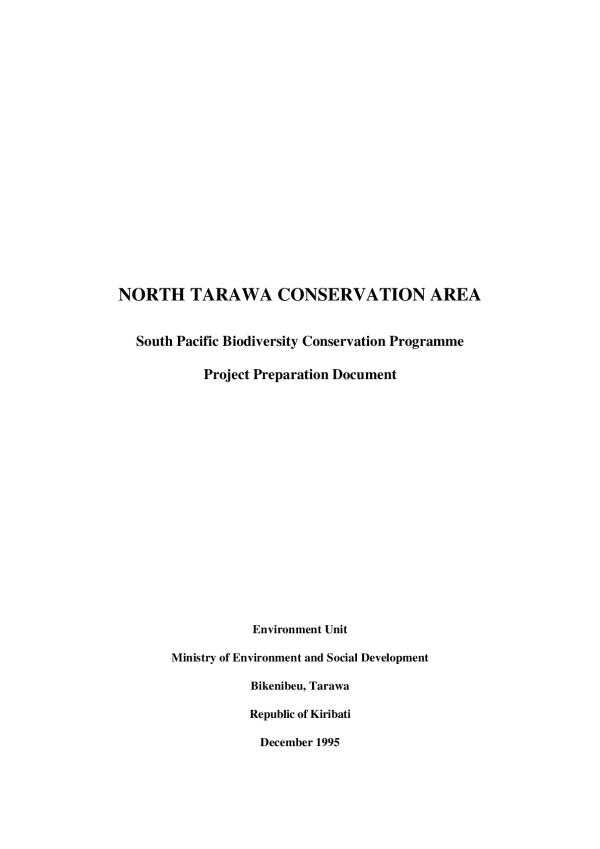 The Government of the Republic of Kiribati has formally proposed to the South Pacific Regional Environment Programme (SPREP) that the islets, lagoon and reefs of North Tarawa Atoll be designated a Conservation Area under the South Pacific Biodiversity Conservation Programme (SPBCP). The proposal for a "North Tarawa Conservation Area Project" has been approved, subject to the completion of a detailed Project Preparation Document (PPD). This document constitutes the PPD.