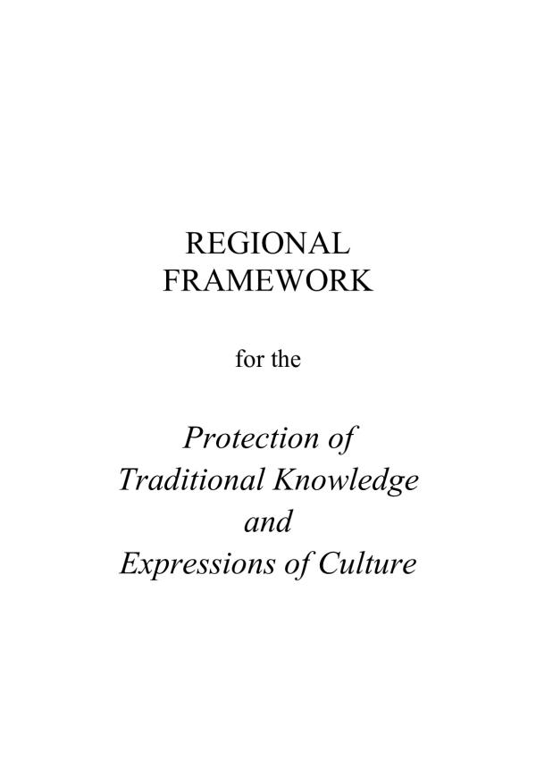 The Pacific Regional Framework comprising this Background Note. Model Law and Explanatory Memorandum, has been developed to assist Pacific Island countries and territories wishing to legally protect its Traditional Knowledge and Expressions of Culture. The framework is developed in response to calls from the region, in the face of increasing exploitation and inappropriate commercialization of their traditional knowledge and expressions of culture.