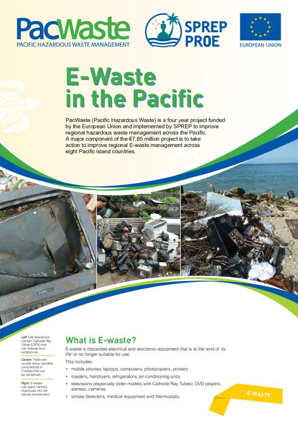 PacWaste (Pacific Hazardous Waste) is a four year project funded by the European Union and implemented by SPREP to improve regional hazardous waste management across the Pacific. A major component of the 7.85 million project is to take action to improve regional E-waste management across eight Pacific island countries.