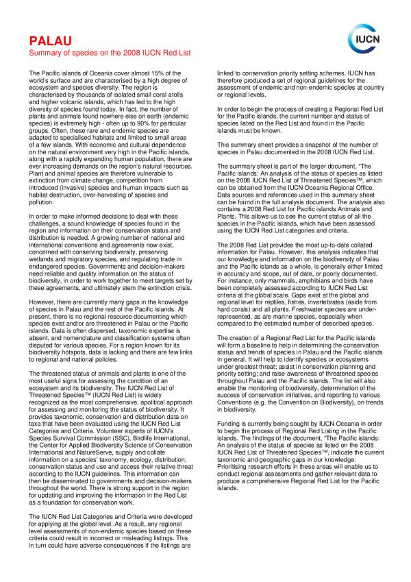 The Pacific islands of Oceania cover almost 15% of the worlds surface and are characterised by a high degree of ecosystem and species diversity. The region is characterised by thousands of isolated small coral atolls and higher volcanic islands, which has led to the high diversity of species found today. In fact, the number of plants and animals found nowhere else on earth (endemic species) is extremely high - often up to 90% for particular groups. Often, these rare and endemic species are adapted to specialised habitats and limited to small areas of a few islands. With economic and cultural dependence on the natural environment very high in the Pacific islands, along with a rapidly expanding human population, there are ever increasing demands on the regions natural resources. Plant and animal species are therefore vulnerable to extinction from climate change, competition from introduced (invasive) species and human impacts such as habitat destruction, over-harvesting of species and pollution.