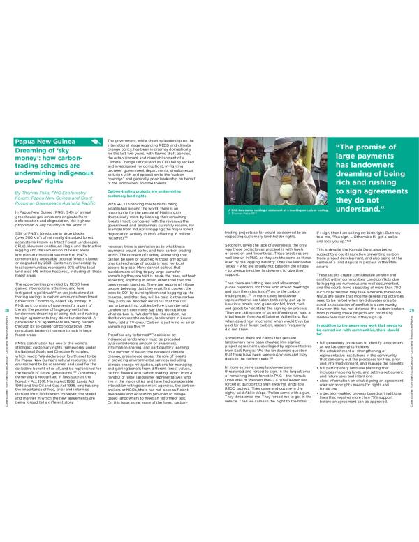 In Papua New Guinea (PNG). 94% of annual greenhouse gas emissions originate from deforestation and degradation, the highest proportion of any country in the world.55 55% of PNG's forests are in large blocks Cover 500 kmJ) of minimally disturbed forest ecosystems known as Intact Forest Landscapes (IFLs). However, continued illegal and destructive logging and the conversion of forest areas into plantations could see much of PNG's commercially accessible tropical forests cleared or degraded by 2021. Customary ownership by local communities represents 97% of the total land area (46 million hectares), including all these forest areas