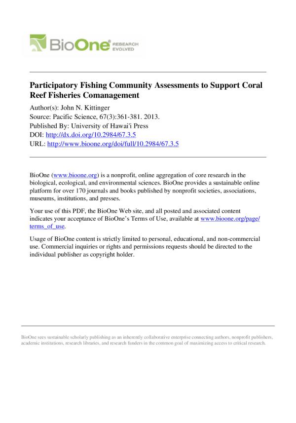 Fisheries - Assessments - Coral reefs - Oceania ; Fisheries - Comanagement - Natural resources - Oceania