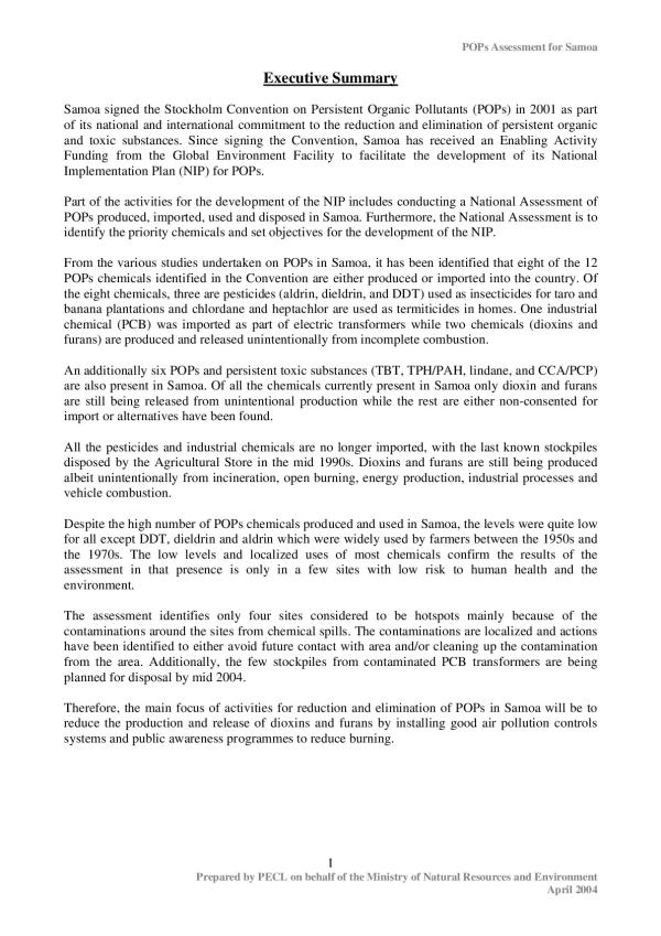 Persistent Organic Pollution - Assessment - Samoa