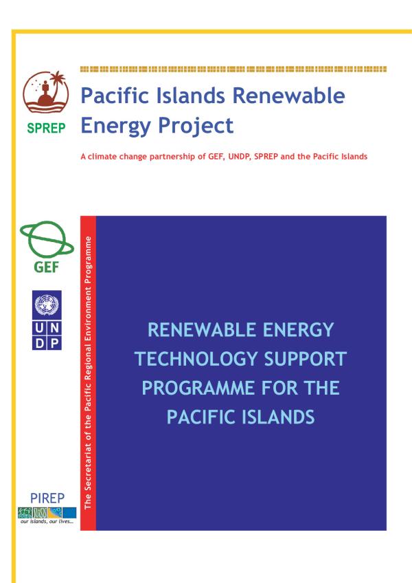 This report is an outcome of a series of studies conducted under the framework of the Pacific Islands Renewable Energy Project (PIREP) a climate change mitigation partnership of the Global Environment Facility (GEF), the United Nations Development Programme (UNDP), the Secretariat of the Pacific Regional Environmental Programme (SPREP) and Pacific Island Countries (PICs).