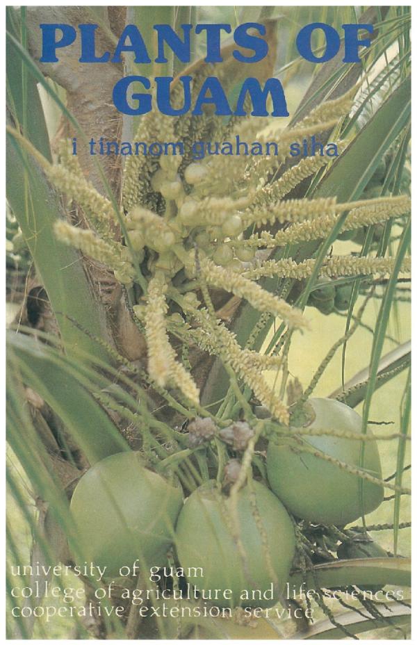 Guam is the largest and southern-most island in the Marianas chain. It lies about.13° North latitude and has a wet and dry season of approximately equal lengths. The island is about 30 miles long and ranges from four in the middle to eight miles in width and is oriented in a northeast, southwest direction. The pre- vailing winds are easterly and bring an average annual rainfall of about 85 inches. A range of hills extends from the waist toward the south on the western side. The highest of these hills, 1300 feet, is Mt. Lamlam which lies toward the south end and commands a view of the entire island. A fringing reef on the western side extends from north to south and to the middle of the island on the east. A number of beautiful bays and sandy beaches occur in this section of the coast line. On the north end, sheer limestone cliffs rise to 600 feet elevation and descend in a series of wave-cut ter- races to an algal bench just above sea level. The bench, composed of coral and coralline algae, is flat and contains numerous tidal pools rich in marine algae and invertebrates.