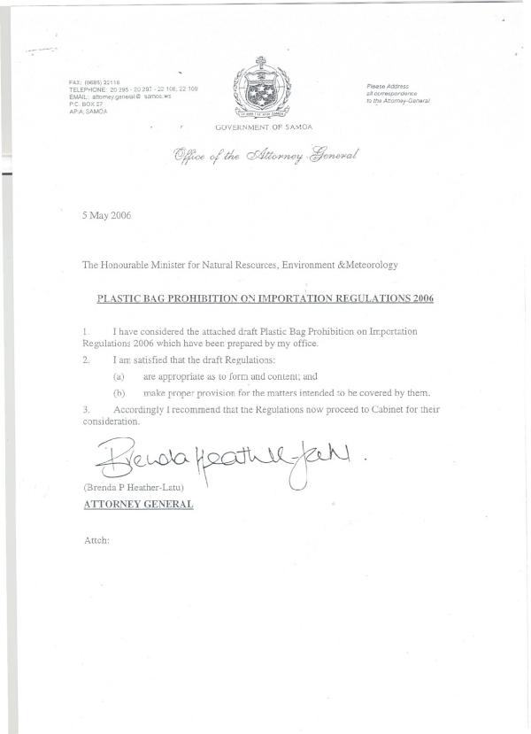 Plastic bags - Importation - Regulations - Samoa