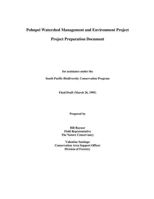 for assistance under the South Pacific Biodiversity Conservation Programme : final draft|also hold online copy