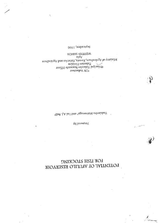 In an effort to lessen pressure on the natural reef fishery resources, Fisheries Division has an aquaculture programme assessing the potential of inland fish farming. Since reservoirs for electricity offers opportunity for fish stocking which can serve as a potential source of protein for local population, the construction of the Afulilo Reservoir was seen as offering a possibility for fish production.