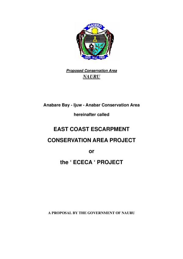 The proposal to have the East Coast Escarpment designated as one of Nauru's five conservation areas to date stemmed from the government's desire to promote sustainable use of the country's terrestrial and marine biodiversity as a foundation for sustainable development. The other Conservation areas as shown in Map 1 have been recommended as an addition to the East Coast Escarpment Conservation Area. This desire of government is well supported by the local communities who have shown almost universal support for the need to promote sustainable development and conservation of Nauru's biological diversity. This was further well documented in the Nauru Australia Cooperation Rehabilitation and Development Feasibility Study ( Overview Report 1994 ).The East Coast Escarpment has also been identified in the Nauru National Environment Management Strategy (in press) as perhaps having the highest priority for the sustainable use and conservation of the nation's biological resources.