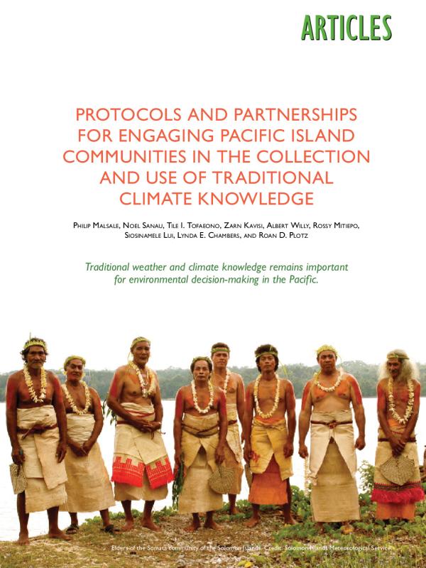 Traditional knowledge (TK) on weather and climate is an important aspect of community life in the Pacific. Used for generations, this knowledge is derived from observing biological and meteorological variables and contributes to building community resilience to weather extremes. Record Created: 21-Nov-2018