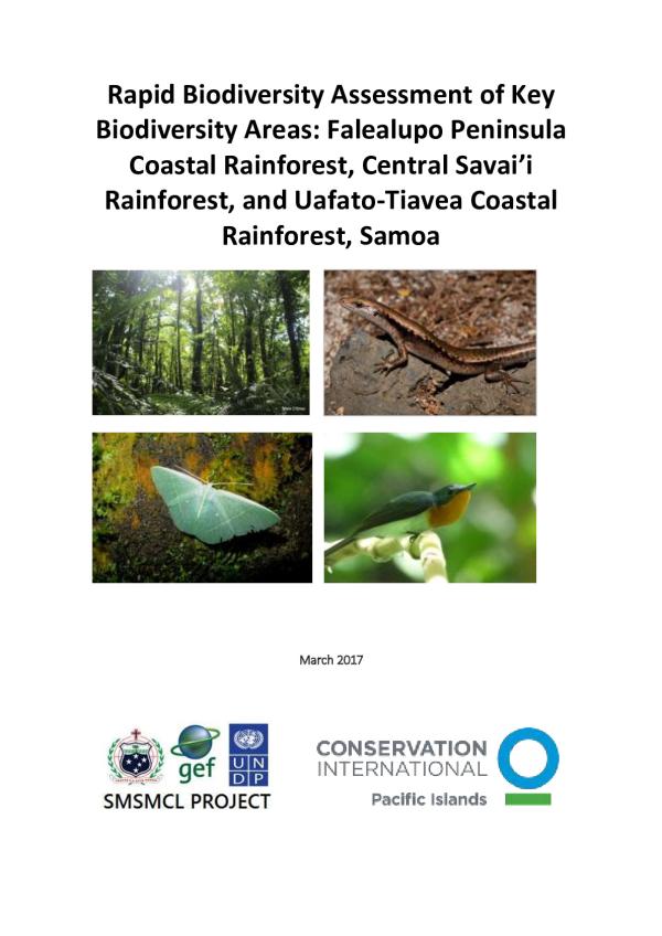 A Biological Rapid Assessment Program (BIORAP) was conducted from July 16 to August 3, 2016 in three Key Biodiversity Areas (KBAs) in Samoa: the Central Savaii Rainforest KBA, and the Falealupo Peninsula Coastal Rainforest KBA on Savaii; and the Uafato-Tiavea Coastal Rainforest KBA on Upolu. A literature review of biodiversity information was also conducted on a fourth site - the Apia Catchments KBA