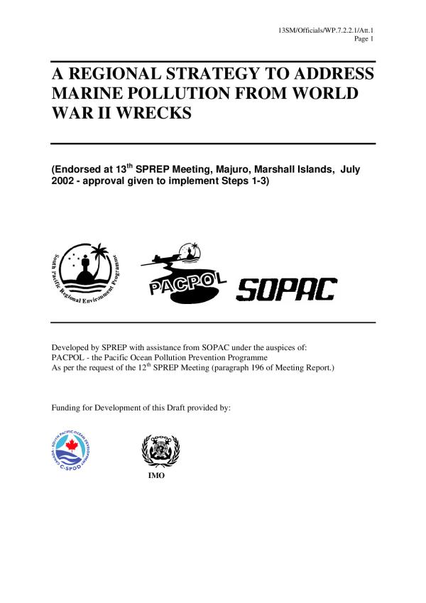 Kept in vertical file collection|Draft for Consideration|Developed by SPREP with assistance from SOPAC under the auspices of: PACPOL - the Pacific Ocean Pollution Prevention Programme. As per the request of the 12th SPREP Meeting (paragraph 196 of Meeting Report)