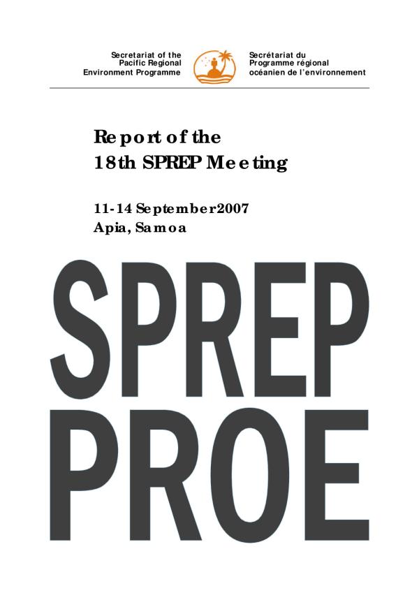 The 18th SPREPMeeting(18SM) was convened in Apia, Samoa from 11 to 14 September 2007. Representatives of the following SPREP countries and territories attended: American Samoa, Australia, Cook Islands, Federated States of Micronesia, Fiji, France, French Polynesia, Guam, Kiribati, Marshall Islands, New Caledonia, New Zealand, Niue, Palau, Papua New Guinea, Samoa, Tokelau, Tonga, Tuvalu, United Sates of America and Wallis and Futuna. Observers from a range of regional, international and non-governmental organizations (NGOs) also attended.