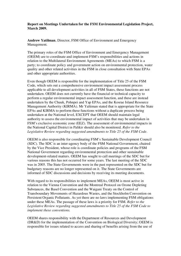Environmental Law and Legislations - Federated States of Micronesia - Congresses