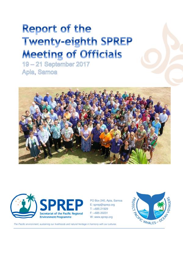 The Twenty-eighth SPREP Meeting of Officials (28SM) was held from 19-21 September 2017, in Apia, Samoa. Present at the Meeting were representatives from American Samoa, Australia, Cook Islands, Commonwealth of the Northern Mariana Islands, Federated States of Micronesia, Fiji, France, French Polynesia, Kiribati, Republic of the Marshall Islands, New Caledonia, New Zealand, Niue, Papua New Guinea, Palau, Samoa, Tokelau, Tonga, Tuvalu, United Kingdom, United States and Wallis and Futuna.