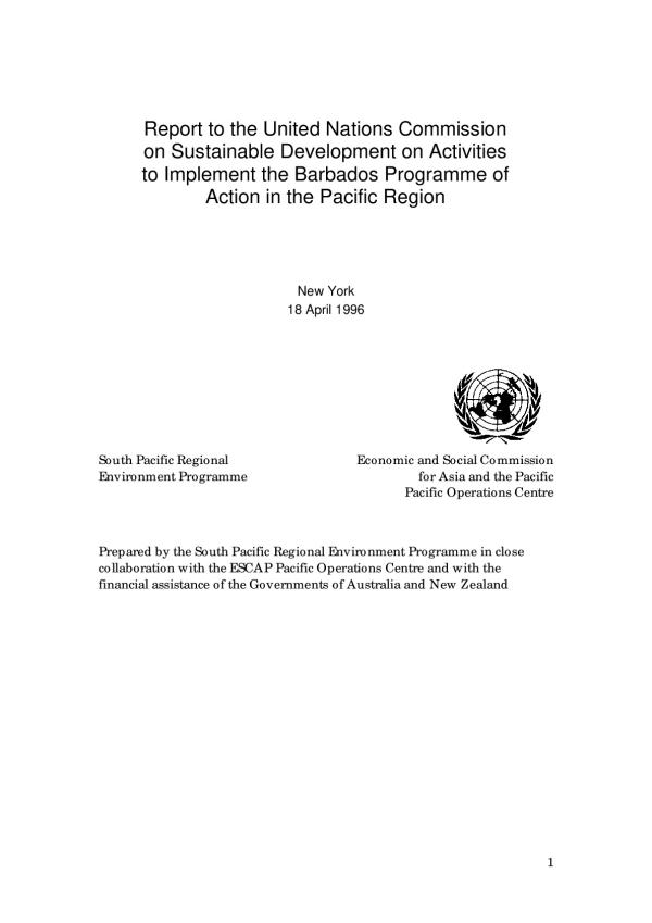 activities have not necessarily been stimulated by Barbados. Indeed the timeframe for the development of successful projects in the Pacific is such that it is unlikely that the Barbados Programme of Action has been a significant catalyst for much of wha is contained in this report. But it does provide an internationally agreed framework for review.