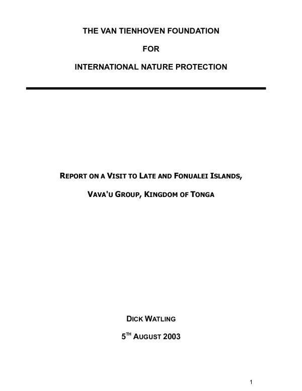 The Van Tienhoven Foundation provided Dick Watling with a grant of US$2000 to enable him to visit the islands of Late and Fonualei to determine the success of translocation efforts of the Polynesian Megapode Megapodius pritchardii to those islands in the early 1990s. This report is the formal account of the visits for the Van Tienhoven Foundation and is submitted in accordance with the conditions of the grant.