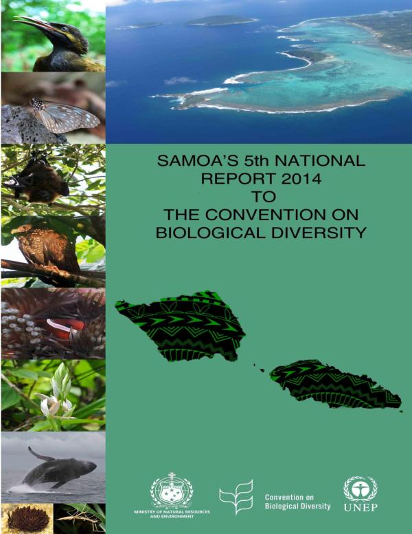 Samoas fifth national report to the Convention on Biological Diversity (CBD) examines trends and changes in the countrys biodiversity and the status of NBSAP implementation since the fourth national report was submitted in 2008. The reports format and focus follow those recommended by the CBD Secretariat Guidelines for the Fifth National Report1 for CBD parties.