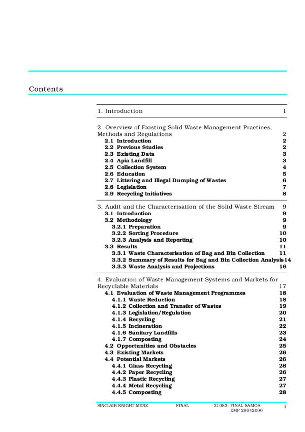 This report was financed by the European Communities from a grant by the European Development Fund and is represented by Sinclair Knight Merz for consideration of the Government of Samoa (GOS). It does not necessarily reflect either the opinion of the latter or the European Commission.
