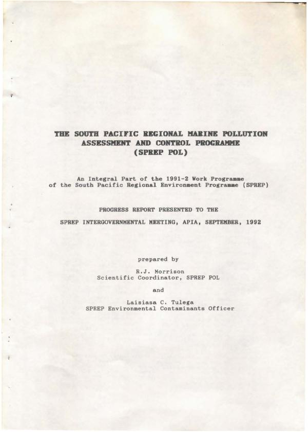 Unpublished|`Progress report presented to the SPREP Intergovernmental Meeting, Apia, September, 1992'|Available online
