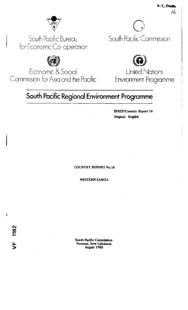 The Western Samoan Government (WSG) has approved and now awaits printing of the Fourth Five Year Plan 1980-84. The Plan, for the first timer contains a chapter (14) specifically on the environment, "Environmental Planning for Development", which tends to be more descriptive of problems than prescriptive of action to be taken on environmental issues. The WSG is possibly the sole island signatory to the draft "Convention for the Conservation of Nature in the South Pacific 1976" for which Western Samoa is the depository. The WSG is also in receipt (c.1978) of an inter-departmental recommendation on environmental policy.