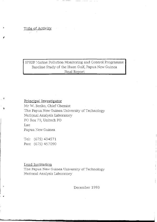 Marine pollution - Monitoring - Papua New Guinea
