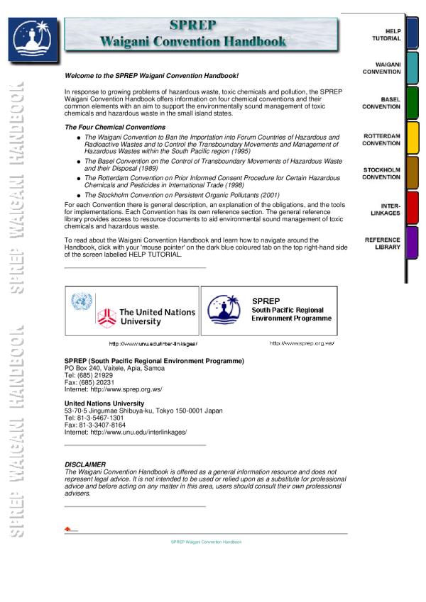 It contains the Waigani Convention which is a convention to ban the importation into forum countries of Hazardous and radioactive wastes and to control the transboundary movements and management of hazardous wastes within the South Pacific Region (1995)