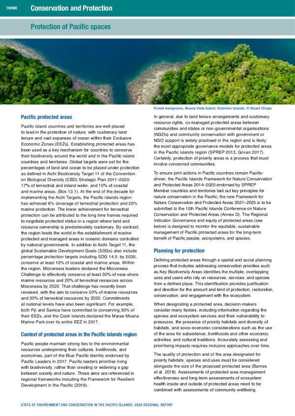 Pacific island countries and territories are well placed to lead in the protection of nature, with customary land tenure and vast expanses of ocean within their Exclusive Economic Zones (EEZs). Establishing protected areas has been used as a key mechanism for countries to conserve their biodiversity around the world and in the Pacific island countries and territories