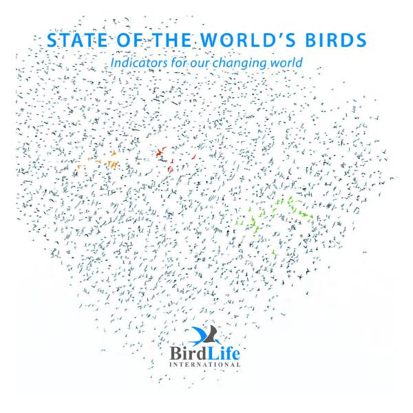 This report is a brief summary of the information available on BirdLifes State of the worlds birds website. Using the most up-todate analyses, it outlines why birds and biodiversity are important, what we know about the changing state of the worlds birds (STATE), why birds are declining (PRESSURE) and what can be done to improve their status (RESPONSE). It presents and lists a small sample of the case studies providing evidence for these messages and examples of BirdLifes work.