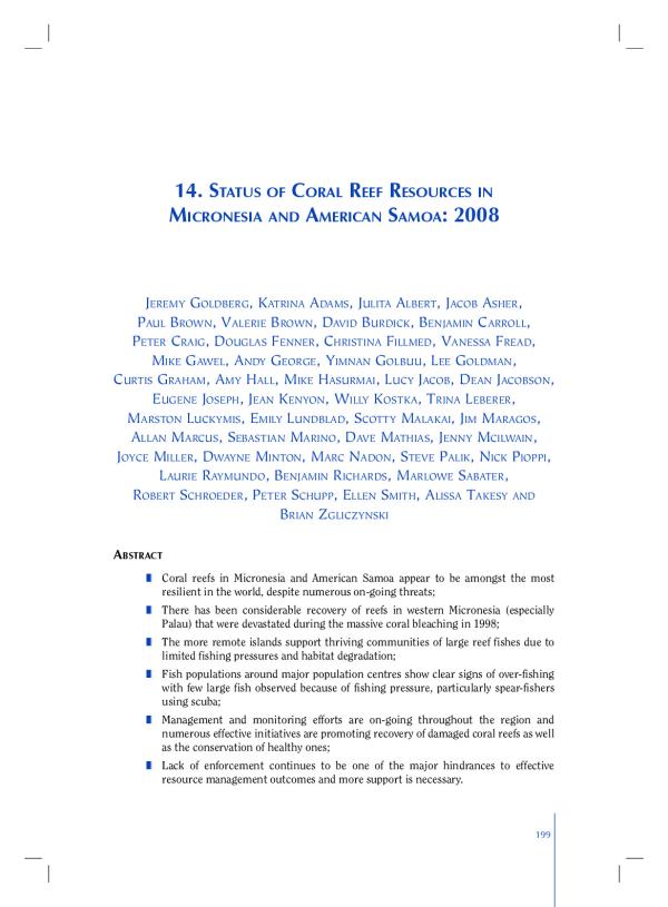 Status of coral reef resources in Micronesia and American Samoa : 2008