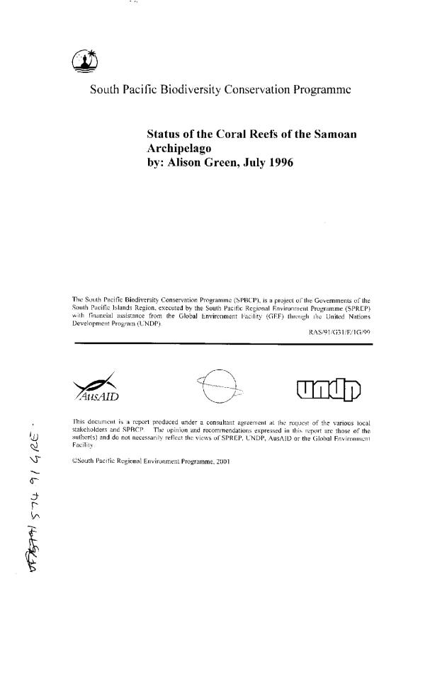 Coral reefs are diverse marine ecosystems that flourish in the clear, tropical waters of the South Pacific. Samoa is fortunate to have well developed coral reefs surrounding most of the islands in the archipelago. These reefs are an important natural resource, since they provide the basts for the valuable inshore fishery for the people of American and Western Samoa (Craig et ai. 1993, Zann 1991). Coral reefs also play an integral role in the rich cultural heritage of these islands.