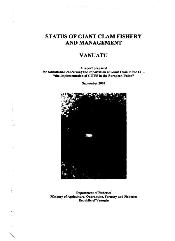 Vanuatu is an archipelago of 80 volcanic islands in the Western Pacific ocean with a population of 192,000, the majority of which are Melanesian. Approximately 79% of the population live in the rural areas, and depending on subsistence lifestyle of gardening, fishing and animal keeping. The islands are geologically young with narrow fringing reefs that support a limited marine and fisheries resources. These marine resources are important source of protein and a source of income from local sale of products such as fish, crabs, shellfish and lobsters. Trochus shell (T. niloticus); bech-de mer (Holothurians) and fish are an important source of income for the coastal people. The traditional practice of Customary Marine Tenure (CMT) system constitute the main resources management strategy for the marine resources throughout Vanuatu.
