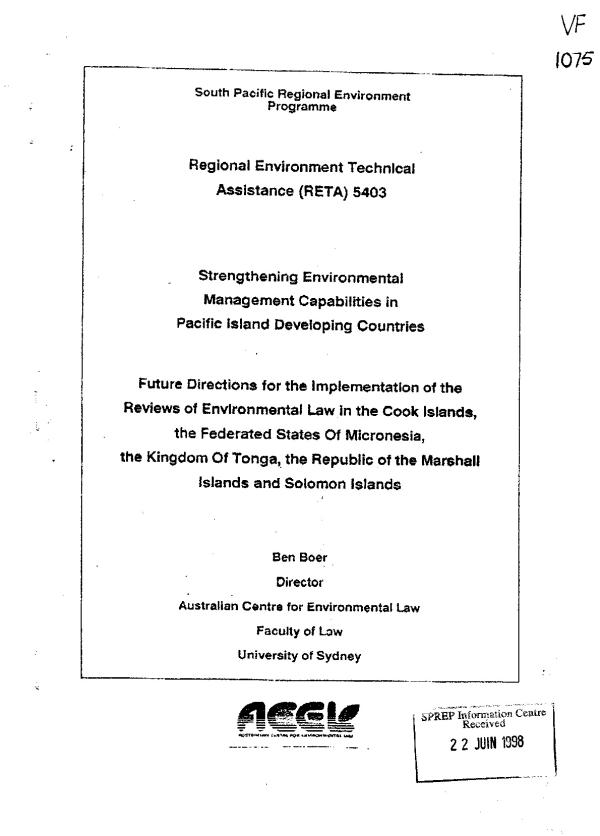 Kept in the Vertical File (SPREP Regional Environment Technical Assistance) RETA