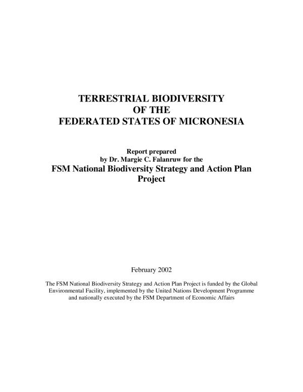 The diversity of terrestrial plants and animals within the FSM varies from east to west due to differences in climate (particularly rainfall), geology, topography and geographical isolation. Major vegetation types in the FSM are: cloud forest, native upland forest, palm forest, agroforest, secondary vegetation, savanna grass and fem lands, freshwater marsh, swamp forest, mangroves, atoll forest, limestone forest of rocky coasts and beach strand. The area covered by each vegetation type varies between the states and some types may not occur. For example, cloud forest is restricted to the cloud shrouded mountainous peaks of Pohnpei and Kosrae. which are absent in Chunk and Yap. Upland forest and agroforest are the major vegetation types in all states, but the area of relatively intact native forest is very limited in Chunk and Yap. Native forests are being heavily impacted throughout the FSM but vegetation maps based on 1976 aerial photos have been updated only for Pohnpei. Updated vegetation maps are needed to access changes since previous stuveys for the rest of the FSM.