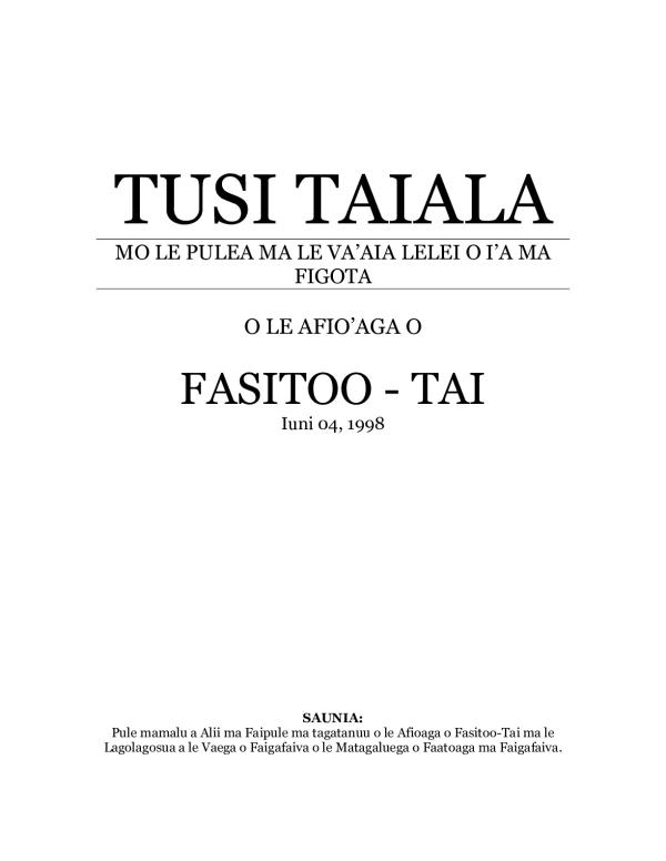 Fishery policy - Samoa - Upolu - Fasitoo-Tai