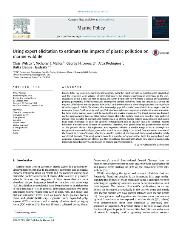 Marine litter is a growing environmental concern. With the rapid increase in global plastics production and the resulting large volume of litter that enters the marine environment, determining the consequences of this debris on marine fauna and ocean health has now become a critical environmental priority, particularly for threatened and endangered species. However, there are limited data about the impacts of debris on marine species from which to draw conclusions about the population consequences of anthropogenic debris. To address this knowledge gap, information was elicited from experts on the ecological threat (both severity and specificity) of entanglement, ingestion and chemical contamination for three major marine taxa: seabirds, sea turtles and marine mammals. The threat assessment focused on the most common types of litter that are found along the world's coastlines, based on data gathered during three decades of international coastal clean-up efforts. Fishing related gear, balloons and plastic bags were estimated to pose the greatest entanglement risk to marine fauna. In contrast, experts identified a broader suite of items of concern for ingestion, with plastic bags and plastic utensils ranked as the greatest threats. Entanglement and ingestion affected a similar range of taxa, although entanglement was rated as slightly worse because it is more likely to be lethal. Contamination was scored the lowest in terms of impact, affecting a smaller portion of the taxa and being rated as having solely non-lethal impacts. This work points towards a number of opportunities both for policy-based and consumer-driven changes in plastics use that could have demonstrable affects for a range of ecologically important taxa that serve as indicators of marine ecosystem health.