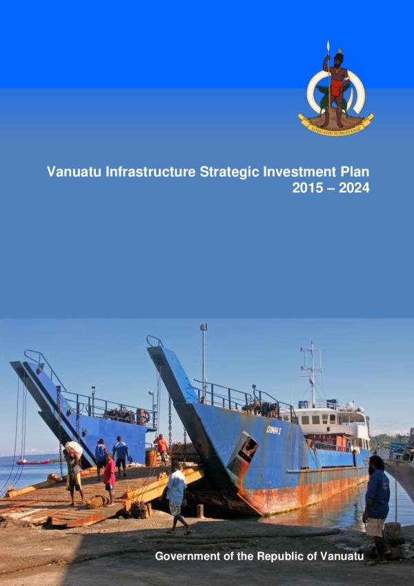 The Vanuatu Infrastructure Strategic Investment Plan 2015 2024 (VISIP 2015)sets out an optimal set of strategic infrastructure investments for Vanuatu. Further, it suggests how to fund and implement these investments, and recommends institutional developments for planning effective, practical, and sustainable, infrastructure in the context of identified and expected financing over the coming decade