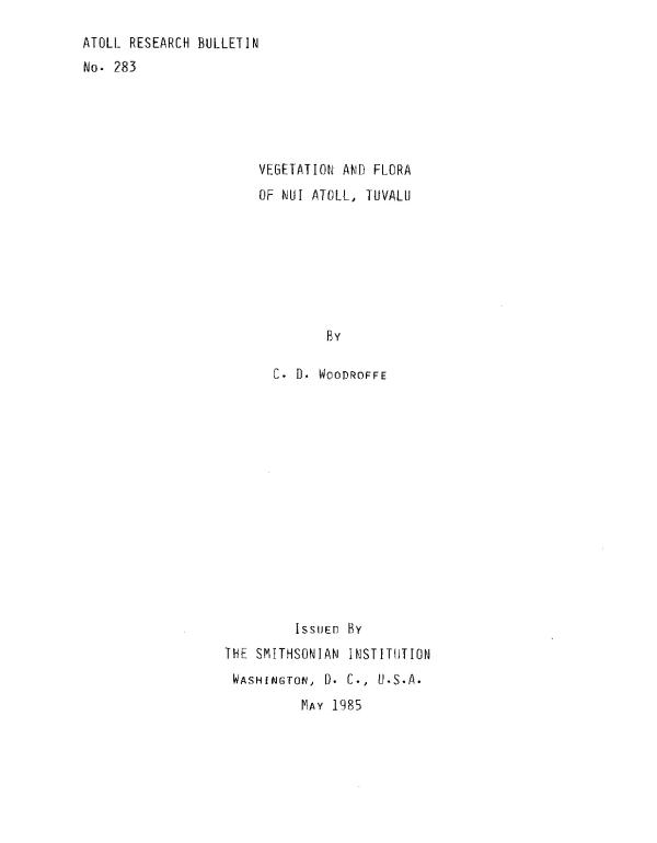 Tuvalu, formerly the Ellice Islands of the Gilbert and Ellice Islands until separation on 1 October 1975, is a particularly remote group of islands in the Central Pacific. There are nine islands, five of which are atolls and four reef-top islands on a reefal platform. The vegetation and flora of these islands have received little attention.