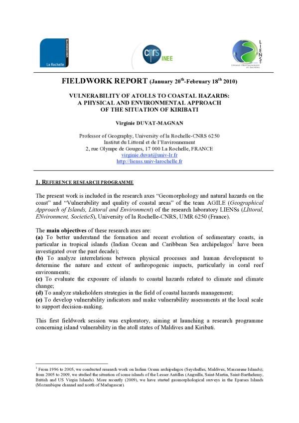 The present work is included in the research axes Geomorphology and natural hazards on the coast and Vulnerability and quality of coastal areas of the team AGILE (Geographical Approach of Islands, Littoral and Environment) of the research laboratory LIENSs (LIttoral, ENvironment, SocietieS), University of la Rochelle-CNRS, UMR 6250 (France).