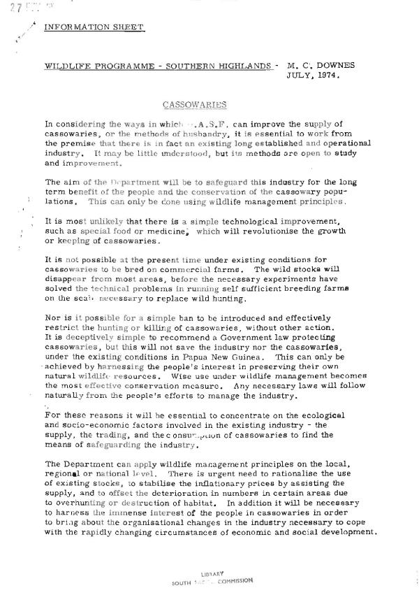 In considering the ways in which .A.S.F, can improve the supply of cassowaries, or the methods of husbandry, it is essential to work from the premise that there i.s in fact an existing long established and operational industry. It may be little understood, but its methods are open to study and improvement.