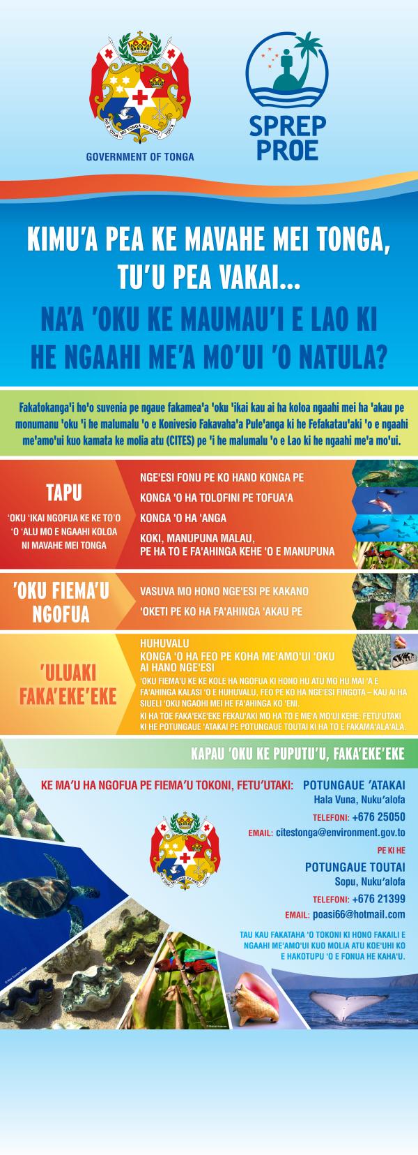 Souvenirs and handicrafts can sometimes include plant and animal products that are protected under the Convention on International Trade in Endangered Species of Wild Fauna and Flora (CITES) or wildlife laws of Tonga.