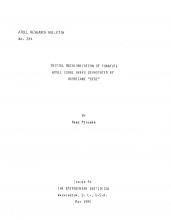 On the 21st of October, 1972, hurricane "Bebe" devas- tated a large part of Funafuti atoll, Ellice Islands. Among the most spectacular geomorphological alterations caused by the hurricane was a storm beach 19 km long, 4 m high and 37 m wide. The amount of coral debris washed up from the offshore coral reefs onto the reef flat was estimated at 2.8 x 10 tons of material (Baines, Beveridge and Maragos, 1974). The oceanside reef communities of the SE and E rim of the atoll had been totally destroyed, and those of the inner reefs of the lagoon side had been heavily damaged. Eight months after the storm a quantitative analysis of the resettlement and recruitment of coral species on 7 reef sections was carried out: the destruction of the biophysiographic zones could be described as increasing from the northern border and also to the W rim of the atoll. Near the centre at Fongafale the lagoon reef flat was covered by thick carpets of the brown alga Dictyota bartaysii, possibly brought about by eutrophication effects. The resettlement of the reef flat by corals began with the recolonization of branching corals as well as regeneration of the very few surviving massive corals: about 80% of the number of new colonies belong to Acropora (mainly A. humilis and A. hyaclnthus), and about 20% to Pocillopora eydouxi, Porltes lutea (?) and some Faviidae. The percentage of the area settled by the massive coral species is, however, greater than that settled by the branching species. Nevertheless, in the long-term, branching corals are expected to have a decisive influence on the future structural and biophysiographic zonation of the reef edge and reef flat, due to their more numerous young colonies, which are evenly scattered over the reef area, and due to their rapid growth rate. Consequently, an Acropora humilis - hyacinthus-community or an Acropora - Pocillopora eydouxi-assemblage can be predicted as the future biophysiographic zone.