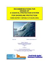 In summary, the coast is part of an emergent, Holocene reef-carbonate system, with the beach being comprised entirely of carbonate sediments developed on phosphate-rich, cavernous, dolomite limestone bedrock. The coastline is partly rocky with classic karst limestone pinnacles found throughout the bay. The reef is a coral dominated system and is narrow and well-flushed, with many closely-spaced reef channels. The coastline at Anibare Bay is an active and dynamic one. The relatively coarse admixture of abraded sand and gravel and highly abraded karts pinnacles testify to this. The beach at the development site is moderately steep and has experienced erosion in the recent past and show sign of recent and current erosion, with fresh erosion scarps. The harbour development appears to have increased this erosion at the localized level, at the adjacent, undeveloped coastal segments. The topographic elevation of the coastal land areas are relatively low with respect to CDL and MSL and under EHWST or during windy and low pressure systems, when large (3 m +) waves approach shore, from the East, the beach, coastal road and adjacent areas can be easily overtopped. The relatively nanow and almost flat backreef and reef flat, together with the numerous closely-spaced reef channels make it almost impossible to dissipitate significant wave energy and prevent overtopping during these conditions. In addition, the almost featureless backreef cannot trap sediments entrained in longshore currents and therefore, sediments removed from the local areas can be completely lost from the coastal system in Anibare Bay.