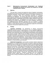 This case study in Vanuatu has targeted the review of legislative, administrative, and traditional/community information processes for mainstreaming the environment into development processes. Lessons learned, constraints, and positive contributions for integration of economic, social, and environmental parameters for sustainable development are highlighted. The Vanuatu Case Study Team worked in association, with the approval of the government and stakeholders, with the Tagabe River Catchment Management Initiative, a stakeholder group formed to address catchment issues within the greater Mele Catchment. The objectives of the case study are to (i) identify the shortcomings and positive aspects identified in the review of legislative, administrative, and traditional/community information processes that act as barriers or potential strengths to mainstreaming; and to (ii) identify actions that can be taken to stimulate the evolution of current planning practices to more effectively manage the environmental, sociocultural, and economic needs of the community.